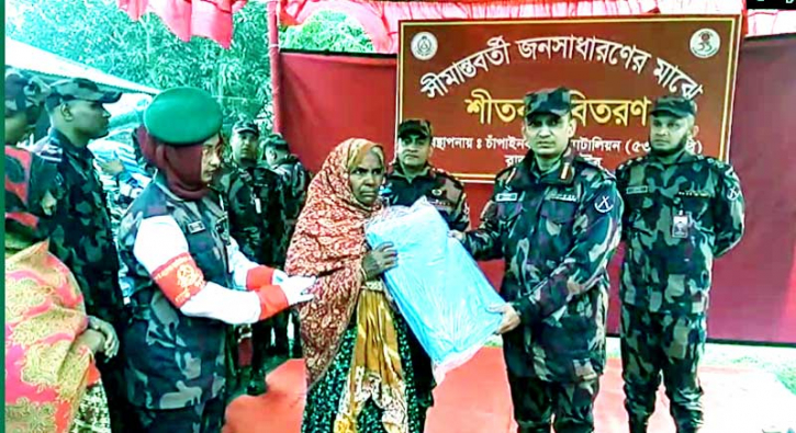 শীতবস্ত্র বিতরণকালে অন্যান্যের মাঝে চাঁপাইনবাবগঞ্জ ব্যাটালিয়ন ৫৩ বিজিবির অধিনায়ক লেফট্যানেন্ট কর্ণেল কাজী মুস্তাফিজুর রহমান, স্থানীয় গণ্যমাণ্য ব্যক্তিবর্গ ও বিজিবি সদসরা উপস্থিত ছিলেন।