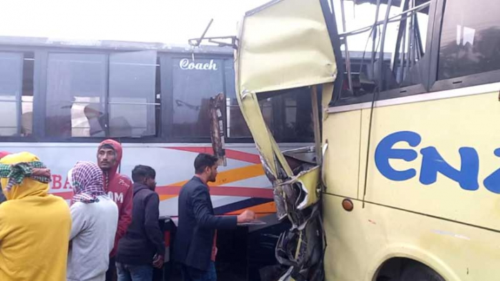 পুলিশ ও প্রত্যক্ষদর্শী সূত্রে জানা গেছে, সকালে সিলেট থেকে ঢাকাগামী ‘এনা পরিবহণ’ ও ‘ইউনিক পরিবহণ’-এর সঙ্গে বিপরীত দিক (গাইবান্ধা) থেকে আসা সিলেটগামী ‘শ্যামলী পরিবহণ’-এর মুখোমুখি সংঘর্ষ হয়। কুয়াশাচ্ছন্ন আবহাওয়ায় দ্রুতগতির তিনটি বাসের এই সংঘর্ষে বাসের সামনের অংশ দুমড়েমুচড়ে যায়। এতে ঘটনাস্থলেই দুইজনের মৃত্যু হয়।