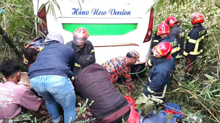 ফায়ার সার্ভিসের উপসহকারী পরিচালক মো. শফিকুল ইসলাম বলেন, দুর্ঘটনার খবর শুনে আমরা দ্রুত ঘটনাস্থলে এসে উদ্ধার কাজ শুরু করি। এখনও উদ্ধার চলছে। বাস রাস্তার পাশে খাদের কাদা-পানির মধ্যে আছে। এ পর্যন্ত সাতজনের মৃত্যু হয়েছে।