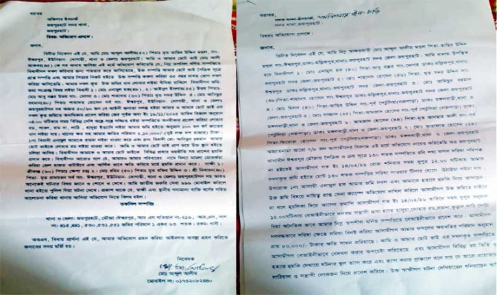 লিখিত অভিযোগে জানা যায়, জয়পুরহাট সদর উপজেলার দোগাছী ইউনিয়নের ঈশ্বরপুর গ্রামের তাছির উদ্দিন মন্ডলের পুত্র আব্দুল আলীম মন্ডল ক্রয় ও পৈত্রিক সুত্রে প্রাপ্ত ১ একর ৩০ শতক জমি দীর্ঘ ৩৫ বছর যাবৎ ভোগ দখল করে আসছেন। চলতি মৌসুমে উক্ত জমিতে সরিষা চাষাবাদ করলে পূর্ব শত্রুতার জের ধরে একই ইউনিয়নের ডোগর গ্রামের আবু বক্করের পুত্র এনামুল হক (৪০) ও তার ১০/১৫ জনের ভাড়াটে সন্ত্রাসী বাহিনী দেশিয় অস্ত্রে সজ্জিত হয়ে আব্দুল আলীমের জমি দখল করেন এবং জমির অপরিপক্ক সরিষা কেটে নিয়ে যায়। শুধু তাই নয় একই কায়দায় এনামুল ও তার ভাড়াটে সন্ত্রাসী বাহিনী আব্দুল আলীমের উক্ত জমি হতে আমন ধানও কর্তন করে নিয়ে যান। সে সময় জরুরী সেবা ৯৯৯ ফোন দিলে পুলিশ ঘটনাস্থলে গিয়ে পরিস্থিতি নিয়ন্ত্রণ করে। এ ঘটনায় থানায় একটি অভিযোগও দায়ের করেন