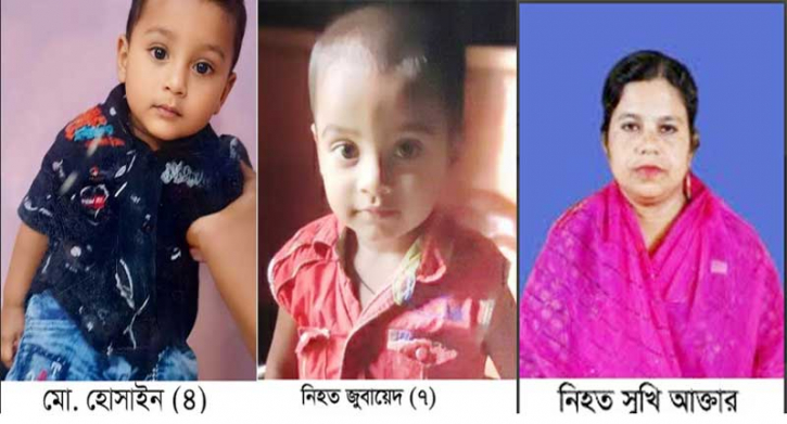 নিহতরা হলেন উত্তর মনিপুর গ্রামের সৌদি প্রবাসী জহিরুল ইসলামের স্ত্রী পাপিয়া আক্তার সুখি (৩২) ও তার শিশু ছেলে মো. হোসাইন (৪) এবং নারীর প্রবাসী ভাসুর আব্দুস সাত্তারের ছেলে জুবায়েদ (৭)। তারা সবাই জহিরুল ইসলামের ঘরে ঘুমিয়ে ছিলেন।