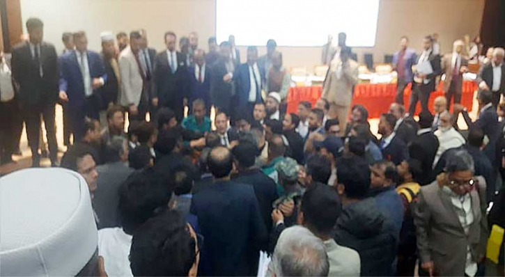 প্রত্যক্ষদর্শীরা জানান, দ্বৈত নাগরিকত্ব নিয়ে সিনিয়র আইনজীবীদের ব্যাখ্যা চলাকালে আপিল শুনানি দুপুরে আধা ঘণ্টার জন্য বিরতি দেয় কমিশন। সিইসির নেতৃত্বে পুরো কমিশন আসন ছাড়ার পর মঞ্চের সামনে আপিলের পক্ষে-বিপক্ষের আইনজীবীরা জড়ো হয়ে বাদানুবাদে জড়িয়ে পড়েন।