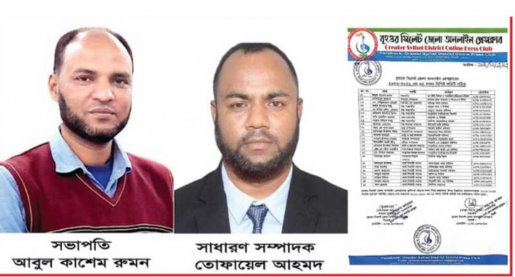 পুরতান কমিটির সকল সদস্যদের সর্ব সম্মতিক্রমে বৃহত্তর সিলেট জেলা অনলাইন প্রেসক্লাবের কমিটিতে দ্বিতীয় বারের মতো ফ্রান্স বাঙালীর প্রথম অনলাইন ও স্যাটেলাইট টেলিভিশন (অন টিভি নিউজের বাংলাদেশ প্রতিনিধি,সাপ্তাহিক বৈচিত্র্যময় সিলেট) পত্রিকার সম্পাদক- আবুল কাশেম রুমন কে সভাপতি ও দৈনিক মুক্তি সমাচার ও ডিএমএস টিভি সহ কো-অর্ডিনেটর মো. তোফায়েল আহমদ কে সাধারণ সম্পাদক নির্বাচিত করা হয়।