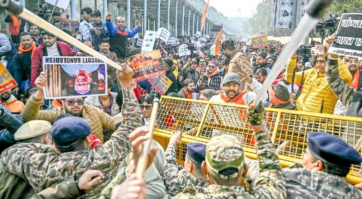 গতকাল দিল্লিতে বাংলাদেশ হাইকমিশনের সামনে উগ্রবাদী হিন্দুদের বিক্ষোভ ঘিরে পুলিশের সঙ্গে সংঘর্ষের ঘটনা ঘটেছে। হিন্দুত্ববাদী সংগঠন বিশ্ব হিন্দু পরিষদ (ভিএইচপি) ও বজরং দলের শত শত কর্মী হাইকমিশনের সামনে জড়ো হয়ে বিক্ষোভে অংশ নেন। সেখানে বাংলাদেশবিরোধী চরম উসকানিমূলক স্লোগানের পাশাপাশি অন্তর্বর্তী সরকারের প্রধান উপদেষ্টা ড. মুহাম্মদ ইউনূসের কুশপুত্তলিকাও পোড়ানো হয়।