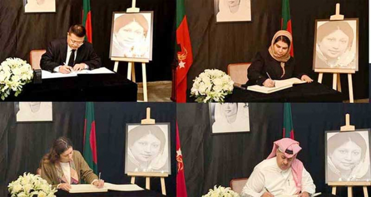 বিএনপির নির্বাহী কমিটির সদস্য তাবিথ আউয়াল জানান, শোক বইয়ে স্বাক্ষর করার জন্য আজ বিকেল থেকেই বিদেশি প্রতিনিধিদের আনাগোনা শুরু হয়েছে। এখন পর্যন্ত চীন, পাকিস্তান, নেদারল্যান্ডস, ভারত ও সুইজারল্যান্ডের প্রতিনিধিরা কার্যালয়ে এসে তাদের শোকবার্তা লিপিবদ্ধ করেছেন। শোক বইয়ে প্রথম স্বাক্ষর করেন চীনের রাষ্ট্রদূত ইয়াও ওয়েন। এ সময় দেশগুলোর প্রতিনিধিরা বেগম খালেদা জিয়ার রাজনৈতিক অবদান ও গণতন্ত্রের প্রতি তার সংগ্রামের কথা শ্রদ্ধাভরে স্মরণ করেন।