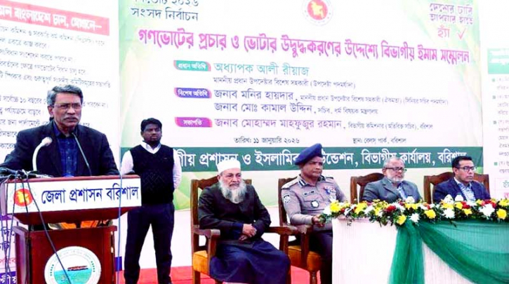 দেশজুড়ে গণভোটের প্রচার কার্যক্রমের অংশ হিসেবে রোববার (১১ জানুয়ারি) বরিশালের বেলস পার্কে বিভাগীয় প্রশাসন ও ইসলামিক ফাউন্ডেশন আয়োজিত বিভাগীয় ইমাম সম্মেলনে যোগ দিয়ে প্রধান অতিথির বক্তৃতায় তিনি এ কথা বলেন।