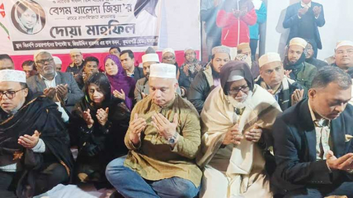 শুক্রবার (২ জানুয়ারি) সন্ধ্যায় কুমারপট্টি রোডে বিএনপি চেয়ারপার্সনের উপদেষ্টা ও বিএনপির কেন্দীয় নির্বাচন পরিচালনা কমিটির সদস্য ড. জিয়াউদ্দিন হায়দারের উদ্যেগে তার বাসভবন প্রাঙ্গণে এ দোয়া মাহফিলের আয়োজন করা হয়। এতে বিএনপি ও অঙ্গসংগঠনের বিপুল সংখ্যক নেতাকর্মীসহ বিভিন্ন শ্রেণি-পেশার মানুষ অংশগ্রহণ করেন।