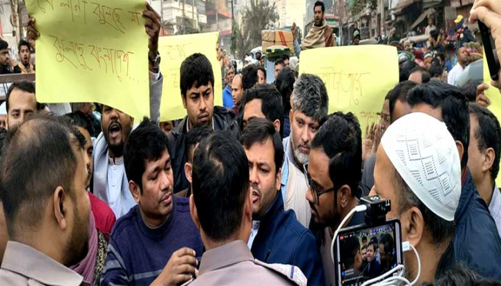 মার্চটি বাঁশতলায় পৌঁছালে পুলিশ সদস্যরা ব্যারিকেড দিয়ে আটকে দেন। এ সময় তারা নানা স্লোগান দিতে থাকেন।