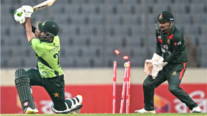 শামিল আহমেদকে নাহিদ রানা ফেরালে হঠাৎ চাপে পড়ে পাকিস্তান। ১৯ রানের ব্যবধানে তিন উইকেট হারানোর পর হাল ধরেন সালমান আগা ও মোহাম্মদ রিজওয়ান। এই জুটিতে আসে ১০৯ রান।